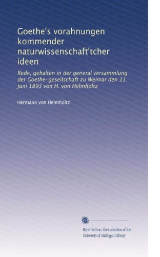 | 67. Goethe's vorahnungen kommender naturwissenschaft'tcher ideen: Rede, gehalten in der general versammlung der Goethe-gesellschaft zu Weimar den 11. juni 1893 von H. von Helmholtz (German Edition) by Hermann von Helmholtz | |
