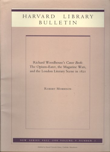 | 74. Harvard Library Bulletin : Richard Woodhouse's Cause Book : The Opium-Eater, the Magazine Wars, and the London Literary Scene in 1821, Volume 9, Number 3 by Robert Morrison | |